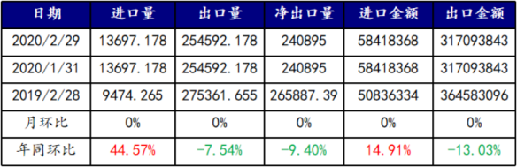 (一)2月我国无缝管进、出口量环比持平,同比下降